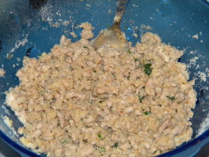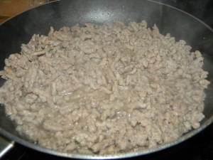 In una padella antiaderente facciamo imbiondire la cipolla con due cucchiai di olio extravergine d’oliva, dopo di che aggiungiamo il macinato. A seconda dei gusti si può sostituire la cipolla con un paio di spicchi di aglio in camicia, da togliere non appena avrà preso colore.