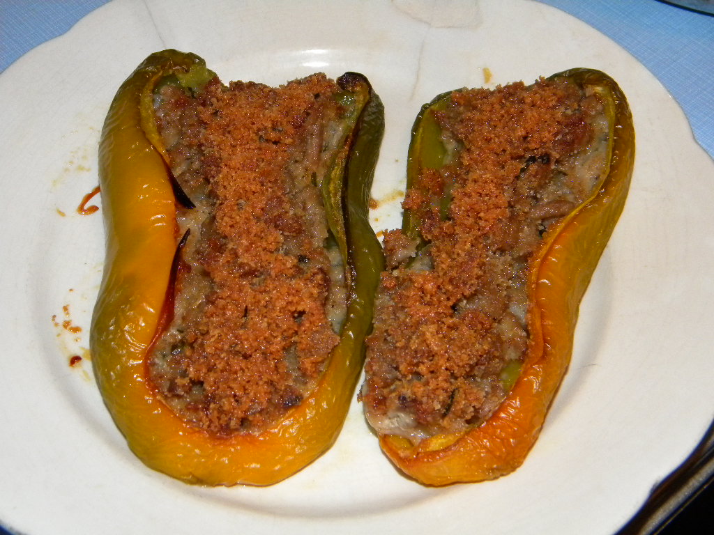 Quanto son buoni i peperoni! Nonostante una certa difficoltà nel digerirli ne mangio in grandi quantità, cercando sempre ricette diverse e originali, ma mantenendomi sempre fedele a due classici. Pipi e patati (peperoni e patate) come vuole la tradizione della mia terra, la Calabria, e peperoni imbottiti. Per quest’ultima ricetta da un po’ di tempo a questa parte ho adottato una variante più gradevole dal punto di visivo ed anche leggermente più semplice e rapida da preparare.