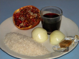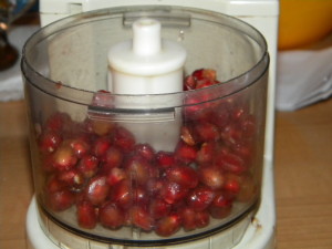 Nell’attesa bisogna sgranare il melograno facendo attenzione ad eliminare le parti bianche che avvolgono i semi, perché amarognole.